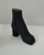 hand-casted candle in the shape of the classic split-toe tabi boot. please note that the addition of black dye makes the surface "waxier" to touch and more prone to discolouration compared to the white, un-dyed version.